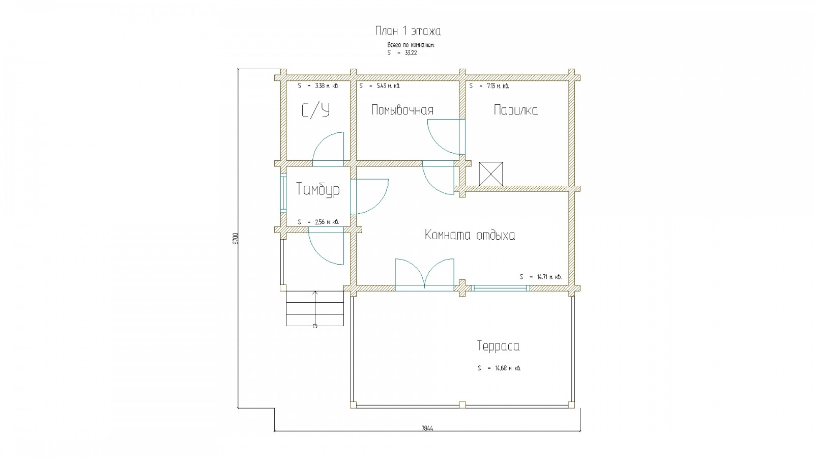 Площадь 1 этажа: 39 м