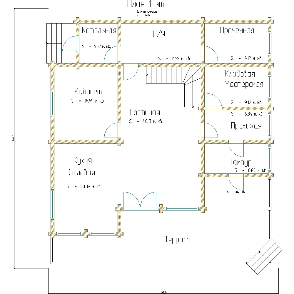 Площадь 1 этажа: 132 м